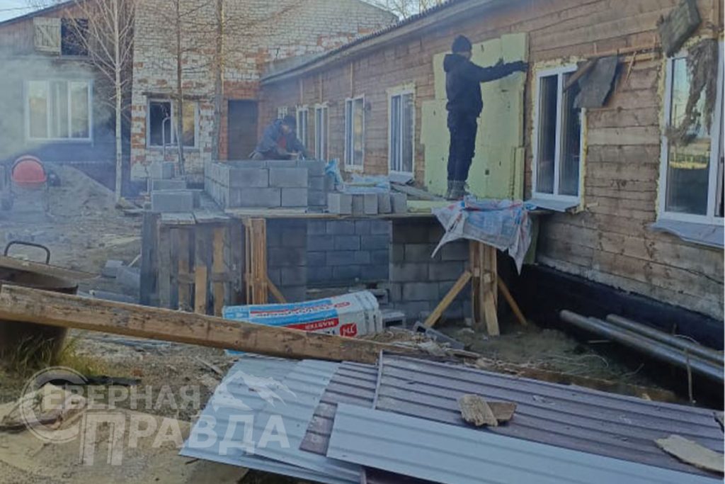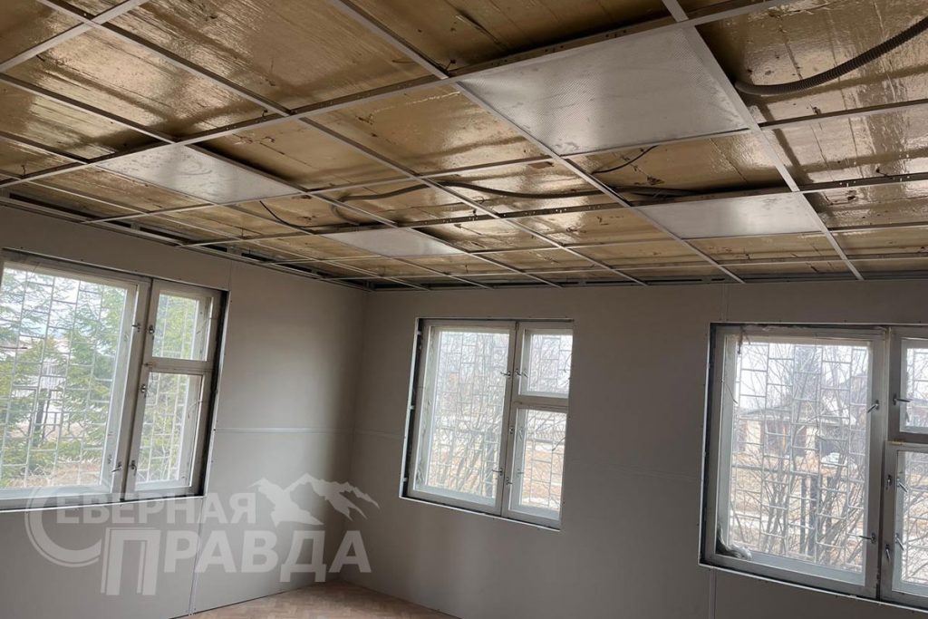 Ремонт в бывшем здании казначейства, с. Чара. Фото службы новостей «СП»В здании детского сада «Ручеёк» в штатном режиме продолжается капитальный ремонт.