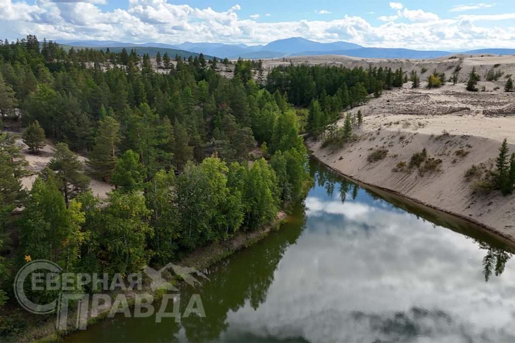 С высоты полёта дрона Чарская котловина предстала во всей своей контрастной красоте. Песчаные дюны соседствуют с тундровыми просторами, болотами и горными вершинами.