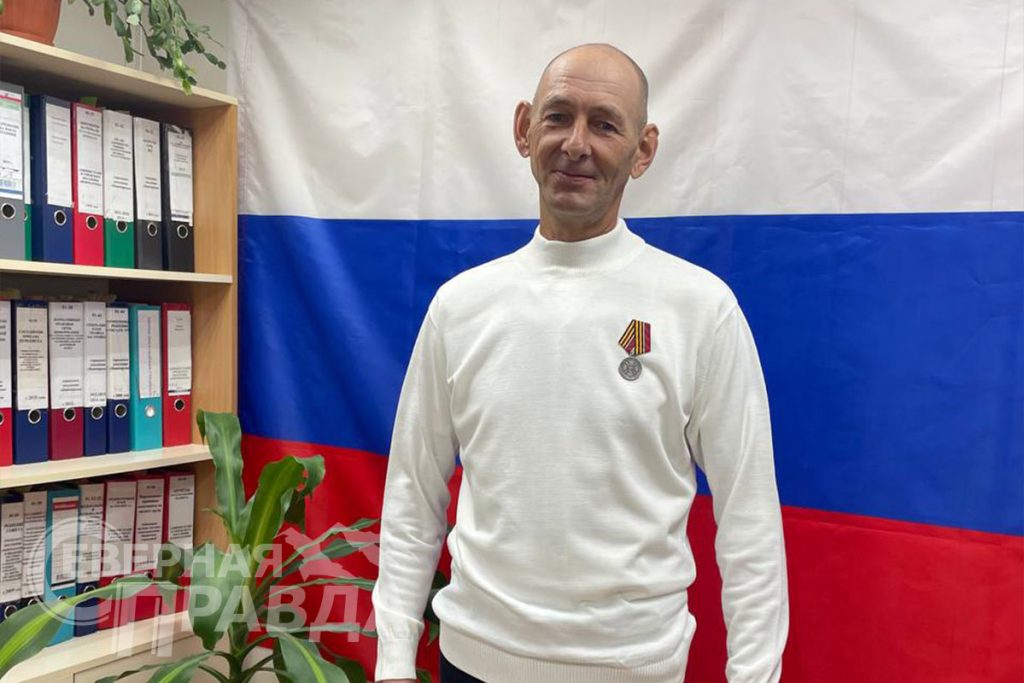 В администрации Каларского муниципального округа наградили жителя посёлка Удокан Дмитрия Клюева. Заместитель главы по социальным вопросам Нина Исаева вручила участнику специальной военной операции медаль «За храбрость» II степени.
