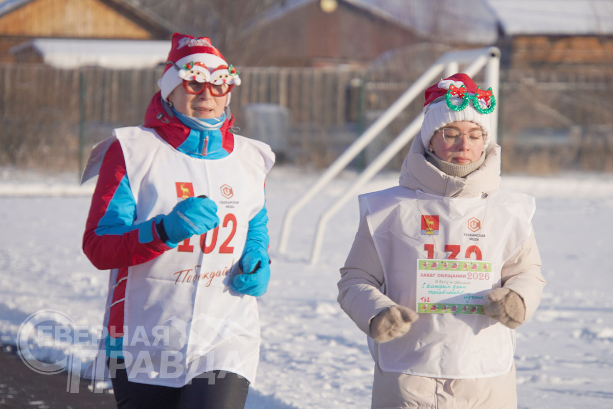 Отдел культуры, спорта и молодёжной политики администрации Каларского муниципального округа и Каларский центр туризма при Каларском историко-краеведческом музее 2 января 2026 года на стадионе пгт Новая Чара в весёлой и праздничной атмосфере провели акцию «Забег обещаний».