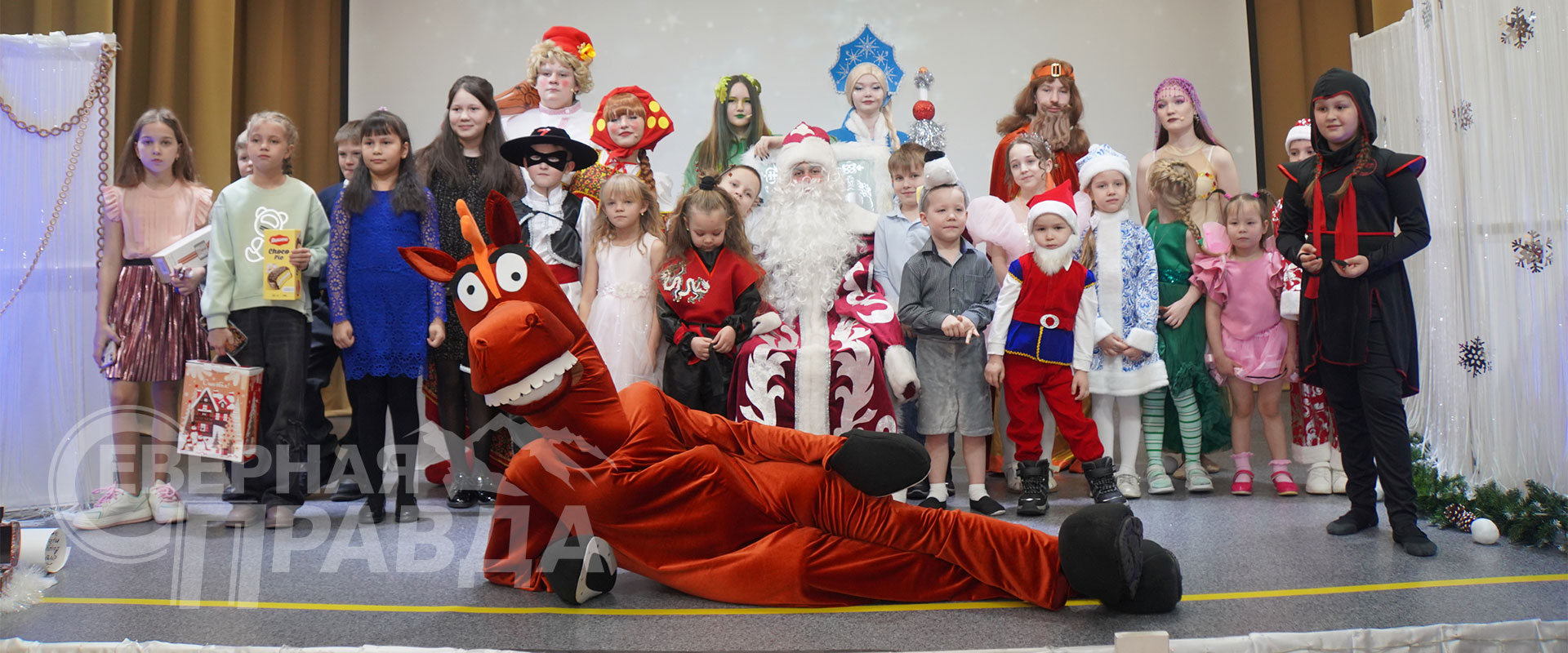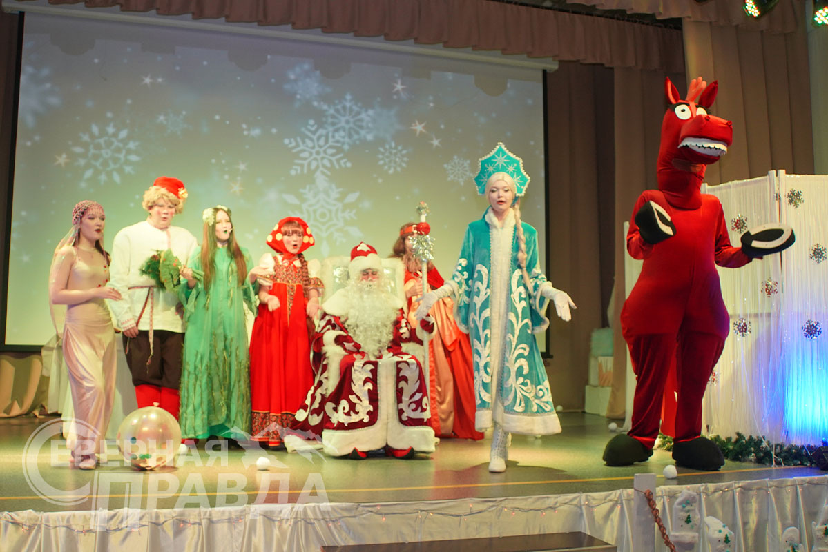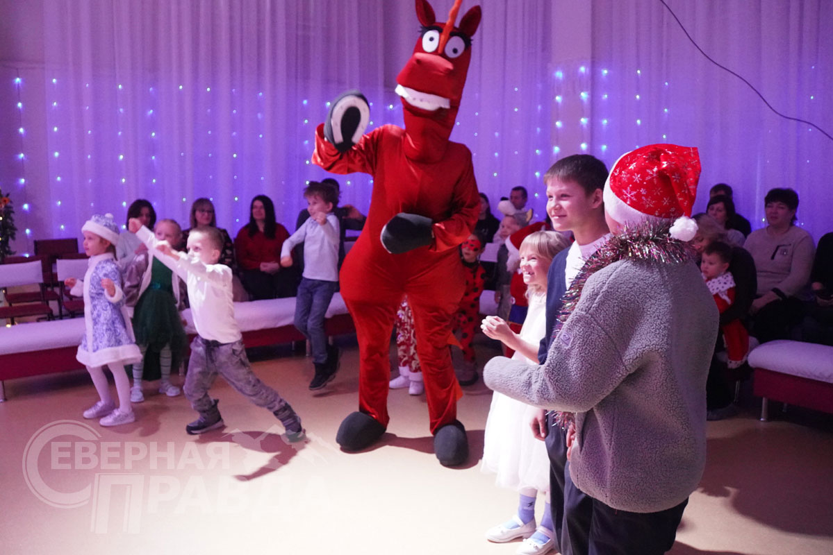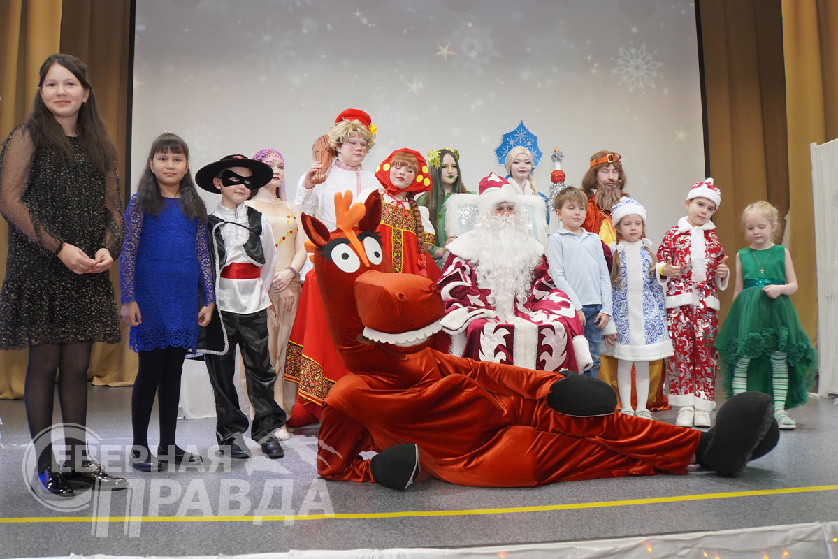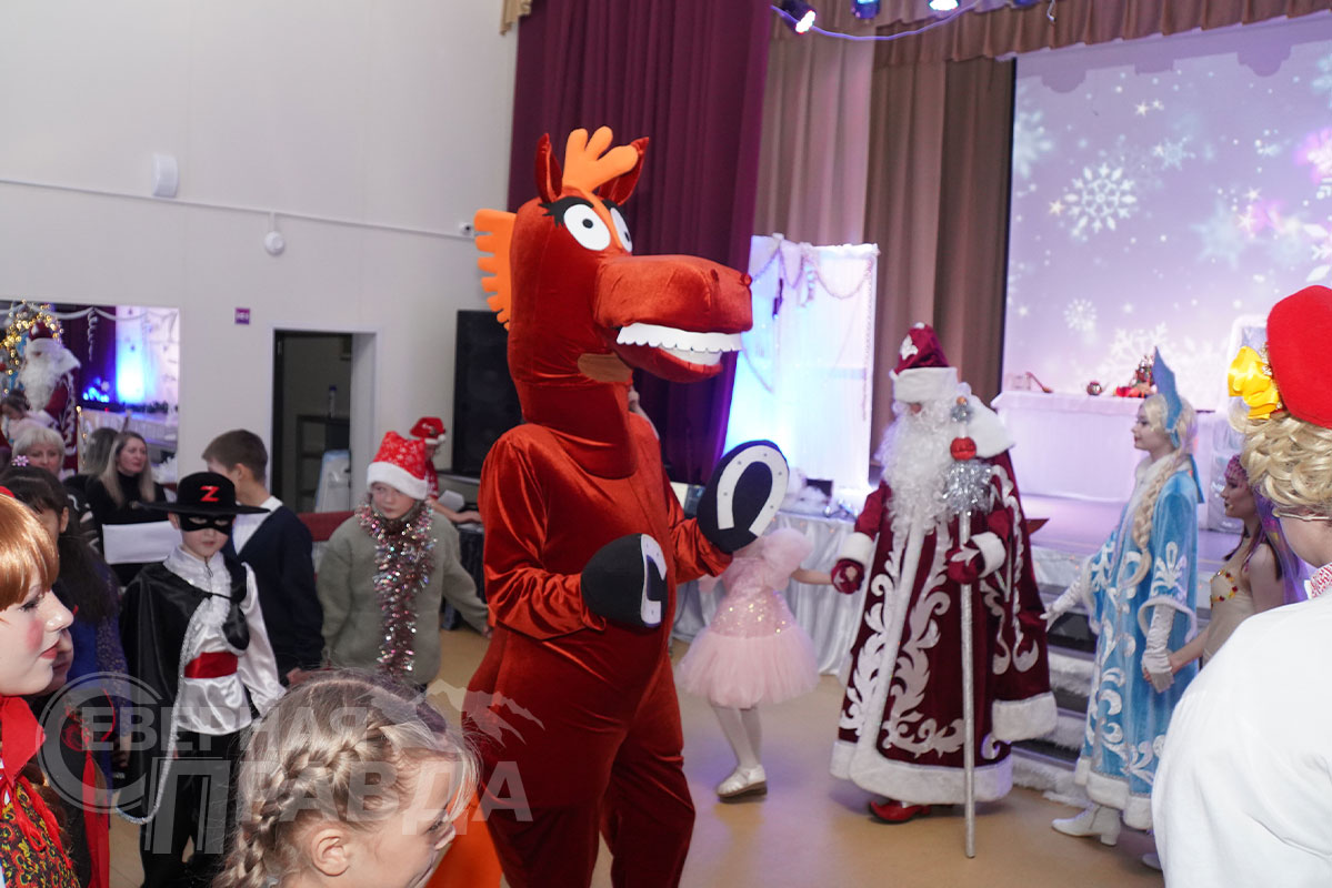 Конь Юлий активно участвовал в представлении, кружась среди детей и исполняя зажигательные танцы, которые вызывали восторг и громкие аплодисменты. Все дети вместе со сказочными героями пели новогодние песни.