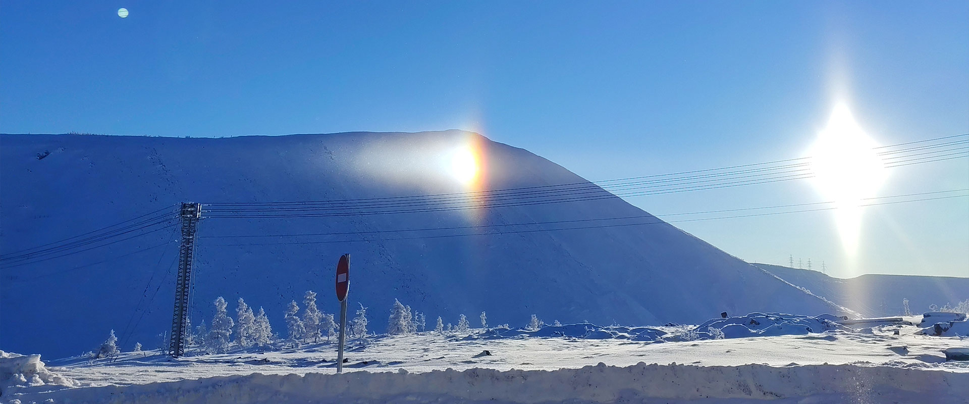 Сегодня на Удокане природа устроила настоящее световое шоу! Сварщик «Удоканской меди» Константин Киселёв сделал этот удивительный кадр: на фоне заснеженных гор светит солнце, а сбоку от него — яркий «двойник».
