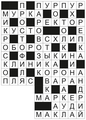 По вертикали: 2. Круговорот. 3. Ультразвук. 4. Турник. 5. Декада. 6. Щётка. 7. Очник. 8. Экран. 13. Окрик. 14. Лассо. 15. Дробь. 16. Инициатива. 17. Гиппопотам. 24. Ритуал. 25. Визбор. 26. Сплин. 27. Этика. 28. Чипсы.