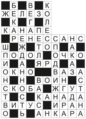По вертикали: 2. Распасовка. 3. Вентилятор. 4. Татами. 5. Канапе. 6. Страж. 7. Индия. 8. Берет. 13. Жажда. 14. Вилок. 15. Цокот. 16. Переговоры. 17. Электричка. 24. Сирота. 25. Ералаш. 26. Опека. 27. Штаны. 28. Лицей.